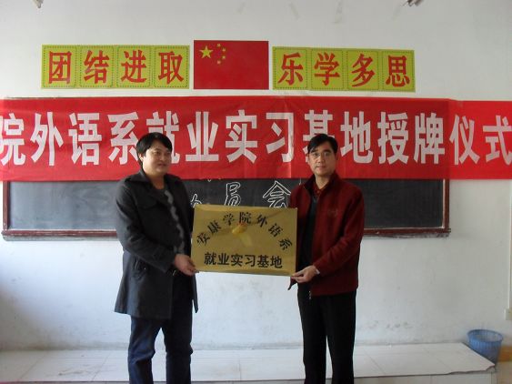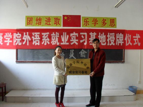 为促进我系学生的实习就业工作,我系邀请汉中、安康等地的英语学校参加我系的专场招聘会,并与他们就毕业生实习、就业等进行了交流,并在岚皋阳光英语学校、石泉蒲公英英语学校两家单位设立yl6809永利官网外语系就业实习基地。11月19日下午,在外语系专场招聘会上,系党总支书记李岩给两家单位进行了授牌仪式。