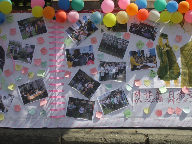 3月31日中午12点,伴随着一阵愉快下课铃声,外语系第三届“日语文化广场”在学院第一食堂前的林荫道上拉开了帷幕。外语系系主任哈红光、书记李延福、副主任张哲华以及外教艾伦·佩里夫妇、赤松秀夫等出席了活动现场并参观了活动的内容。有关日本“衣、食、住、自然风光”四个主题的图片展览;精美的日本寿司料理品尝;激情澎湃的日语歌曲演唱;扣人心弦的有奖竞猜活动;令人流连忘返的日本漫画书籍展览等各个环节依次推出,吸引了众多师生前来参观,也让众多的日本文化迷们大呼过瘾。一条短短的林荫道顿时成了一片欢歌笑语的地方。