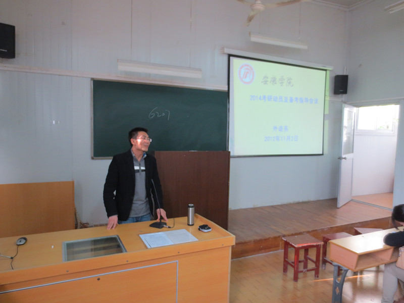 为了加强外语系学风建设,及早帮助我系2010级学生做好毕业规划、树立考研意识,我系于11月12日下午两点半在六号教学楼6405教室举办了外语系2014届考研动员会。出席大会的有外语系副主任张哲华、受邀请为学生答疑的員旭、陈蕾、刘婷、焦育玲等几位老师以及2010级本科班学生及2012级专升本学生。动员会由语言文化教研室主任鲁克伟老师主持。