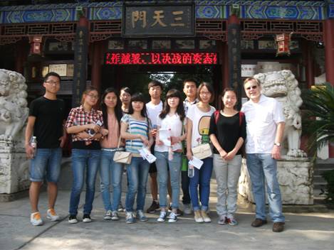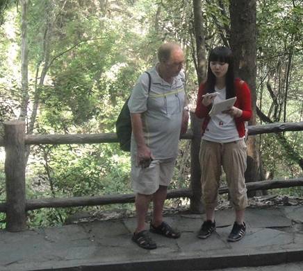 6月2日,天气晴朗,气候宜人。在指导教师孙卫斌、王刚、焦育玲老师的带领下,外语系2010级英语专业翻译方向31名同学与3名外教一道赴香溪洞风景名胜区开展翻译见习活动。本次见习分为3组,每组10名左右学生,配备1位带队教师和1名外籍英语教师。此次翻译见习采取模拟旅游陪同口译的形式,学生担任现场陪同口译,外教作为游客进行提问,指导教师进行引导点评。