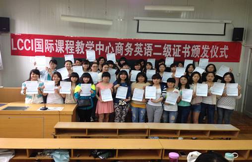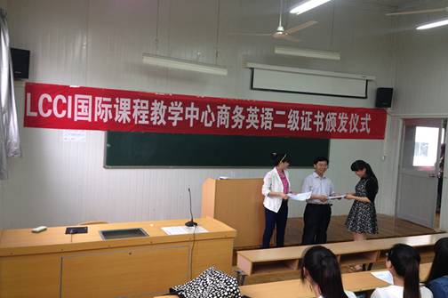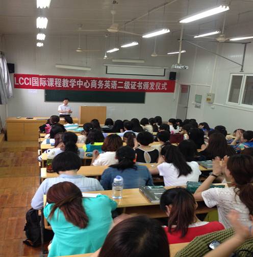 5月23日下午, LCCI全球国际考试证书颁发仪式在6号教学楼6408教室举行。外语系副主任张哲华、LCCI商务英语主讲教师冯琳、取得2013年LCCI国际商务英语证书学生以及外语系2011、2012级翻译方向全体学生参加了仪式。