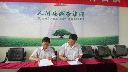 6月16日下午,外语系与安康市香溪洞旅游开发有限公司校企合作签约及教学实践基地揭牌仪式在国家3A级旅游景区——香溪洞隆重举行。香溪洞景区管理局局长及安康市香溪洞旅游开发有限公司董事长孙世福、副局长柯昌海,外语系哈红光主任、副主任张哲华,以及企业员工和永利官网外语系师生约八十余人参加了签约与揭牌仪式。