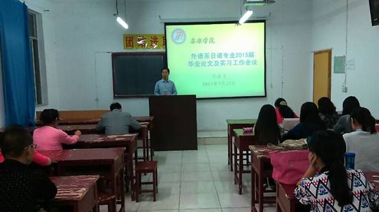 9月28日晚,外语系在6309召开了2015届日语专业学生毕业论文暨实习工作动员会议,外语系副主任张哲华,日语专业教师和2011级学生出席了本次会议,会议由日语教研室主任陈玉平老师主持。