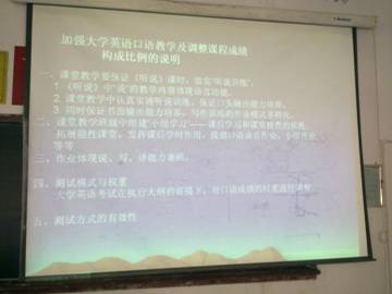 李继平主任结合“2014高等学校大学英语教学改革与发展学术研讨会”和“第四届全国大学英语院长∕系主任高级论坛(2014)”上释放的改革信号,以及近期四六级连续两次题型改革的导向,对应用型本科转型背景下大学英语课程在专业人才培养中的定位和永利官网目前面临的改革机遇与挑战进行了说明,组织教师学习并讨论了“转型背景下永利官网大学英语课程改革走向分析”、“以输出为导向的大学英语口语强化措施”、“艺体类大学英语课程内容和测试方式调整计划”和“通用ESP教学在永利官网的可行性”等专题。通过讨论,大家就整体改革方向形成了基本一致的认同。这为系部和学校进一步完善以上几个“措施和计划”提供了参考依据。