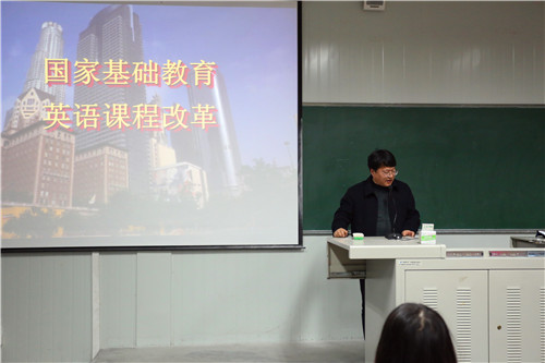 讲课伊始,韦祖安老师首先用“国家基础教育英语课程改革”作为首次课的序曲,启迪同学们深入思考课程改革与教材改革的联系。与此同时,韦老师用鲜活的案例、生动的语言向学生们介绍了中小学英语课程标准的相关内容和中小学英语课程改革动态,并针对农村基础英语教育改革等热点问题与同学们展开了讨论。韦祖安老师的讲课拓宽了学生的视野,激发了学生进一步献身基础英语教育工作深造的热情,获得了同学们的一致好评。