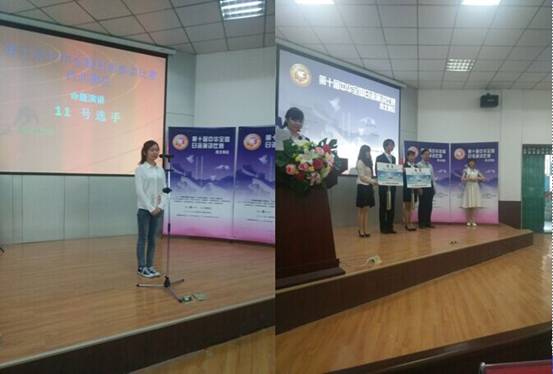 经过前期多场预赛3000余名选手的淘汰筛选后,西安外国语大学、西安交通大学、西安电子科技大学、陕西师范大学、西安翻译学院、西安外事学院、兰州大学、西北师范大学、宁夏大学、青海师范大学、新疆师范大学等21所高校的21名选手参加了西北赛区“争霸战”。 比赛分为命题演讲和即兴演讲两部分,对选手们的语言水平、知识储备、反应能力等方面进行综合考察。在此次比赛中,永利官网外语系日语专业三年级毛怡姗同学表现良好,尤其在即兴演讲发挥出色,得到评委们的认同,最后以总排名第9的成绩获得优秀奖。