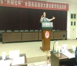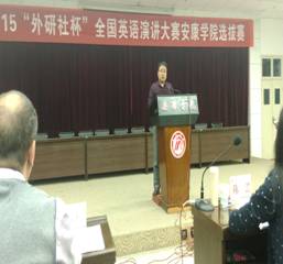 10月14日晚,2015“外研社杯”全国英语演讲大赛yl6809永利官网选拔赛在永利官网图书馆六楼报告厅隆重举行。大赛评委由外语系Frank Paul Roppo、孙卫斌、姜国波、陈蕾、梁艺凡等五位教师组成。学校教务处副处长常权记、外语系主任哈红光、大学英语教学部主任李继平、外语系副主任张哲华,以及部分教师参加此次大赛。本次比赛由教务处和外语系承办,自5月启动以来,经过前期两轮专业组初赛和非专业组初赛遴选,共有7个院系19名选手成功晋级此次选拔赛决赛。