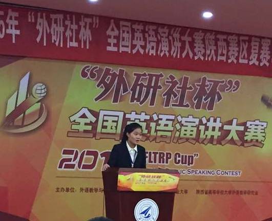 10月31日,2015年“外研社杯”全国英语演讲大赛陕西省复赛在西北工业大学隆重举行,永利官网外语系13级英语专业的魏蓉同学代表永利官网参加了比赛,并荣获三等奖。