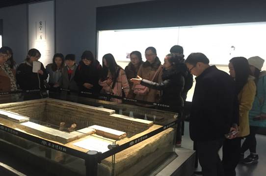 20151211日,外语系2013级共24名日语专业学生赴安康历史博物馆进行了专业见习实践教学活动。按照人才培养方案和课程大纲要求,本次见习的主要目的是使学生能够结合所学语言知识,通过对语言知识和相关信息的组织,用日语语言进行输出表达,锻炼学生的综合语言能力。从而了解日语工作者的职业素养和专业要求,强化专业学习动机。学生将自己所选定的作品在资料收集和调查的基础上,对其背景、内容和相关信息进行整理,用日语语言向带队教师介绍。