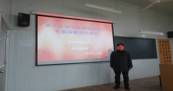 1月6日,应yl6809永利官网邀请,西安外国语大学日本文化经济学院副院长毋育新教授莅临永利官网,为日语专业师生做了题为《基于认知交际理论的汉日礼貌策略对比研究》的讲座,并对日语专业建设与发展做了详细指导。