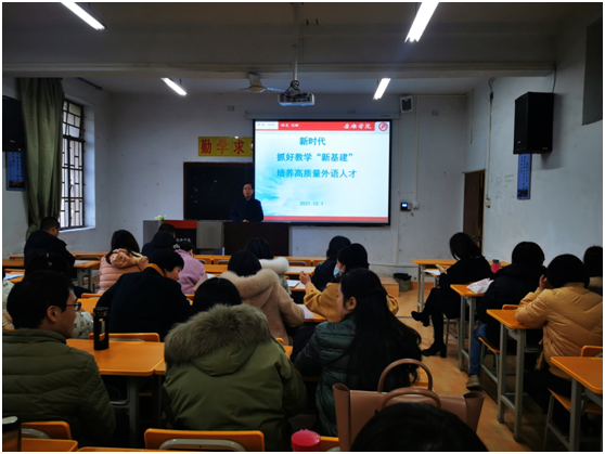 12月1日下午,我院在6107召开全院教职工大会,组织开展学习教育部高教司吴岩司长的“第五届全国高等学校外语教育改革与发展高端论坛”主旨报告、“全面推进高校课程思政高质量建设”专题报告。专题交流会由yl6809永利官网院长张哲华主持。