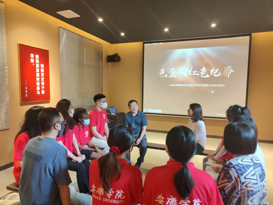 从史料陈列室到初心感悟室,队员们集体观看“芭蕉口事件”和党史专题片《芭蕉口红色纪事——中共安康地委机关转移前后及胡琛烈士的故事》,学习红色故事和革命精神,铭记英雄事迹、继承革命遗志。随后,胡院长和周老师与全体成员对芭蕉口遗址的公示语英译进行了现场的调研与分析,加强了成员们对公示语英译理论的理解。深入调研公示语的英译准则,对国际交流与合作有重要意义,将红色文化准确全面的展示给世界。