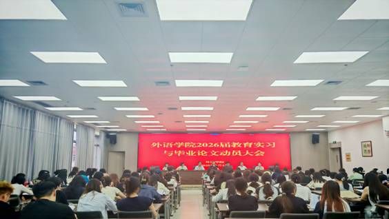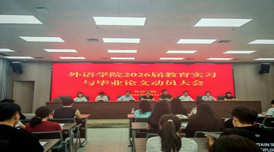 2025年9月5日下午,yl6809永利官网在图书馆六楼报告厅召开2026届教育实习与毕业论文动员大会。学院领导班子、系主任、实习带队教师、辅导员及2026届英语专业全体毕业生参加了本次会议。会议由教学副院长钱莉主持。