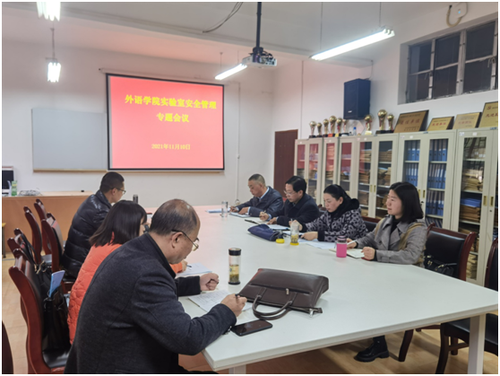 刘子富副院长(实验中心主任)通报了商务英语实训室的改扩建工作进展情况和近期对yl6809永利官网实验室安全检查的相关情况,并对需要重点关注并落实的工作进行了强调。实验室管理员李元明对实验室日常管理工作进行了汇报,说明了各项工作进展情况,并对管理工作的重点难点进行了梳理分析。