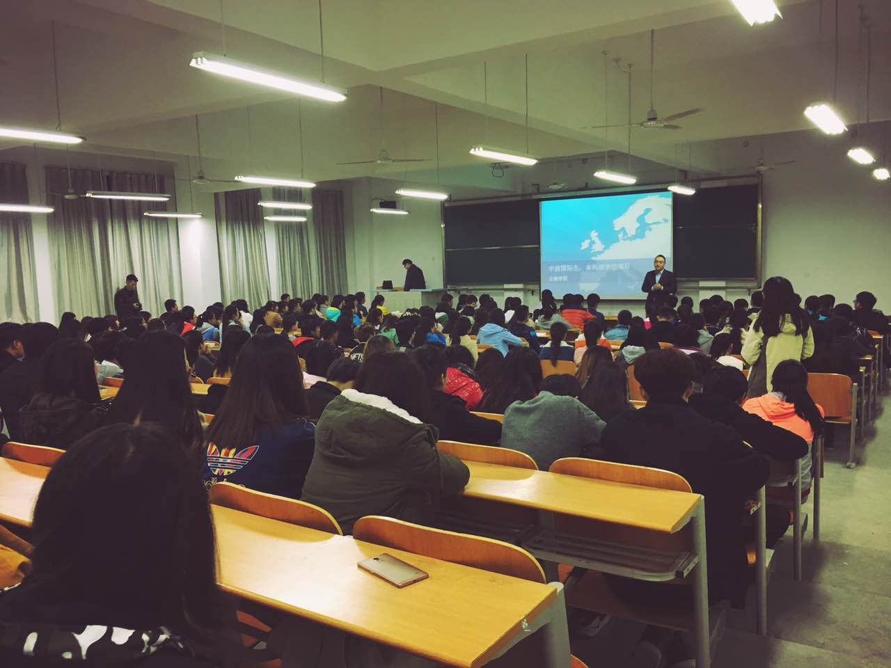 15日晚,来自经管学院与艺术学院的近200位学生在江北校区1203教室参加了宣讲会。宣讲会上,来自波中教育基金会的李丛老师首先对波兰国家现况、波兰高等教育发展情况、赴波兰留学项目进行了介绍,学生们认真听取了李丛老师的报告。而后在宣讲会设置的答疑环节中,部分学生针对自己感兴趣的问题,与李丛老师进行了深入的探讨。